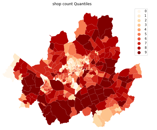 아무튼 mapclassify 라는 library로 읍면동안의 상점수를 토대로 단계구분도를 만들어 보았습니다.